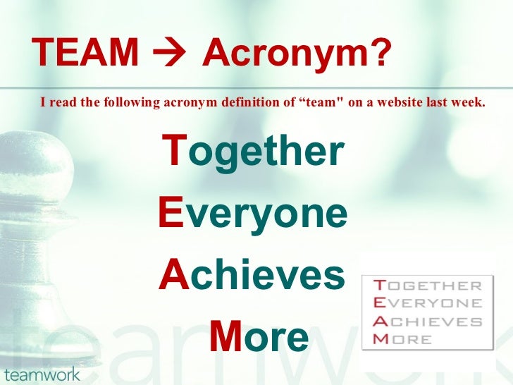 How to abbreviate Team Building. List of 348 TEAM definitions. 3 synonyms of teamwork from the Merriam-Webster Thesaurus plus 16 related words definitions and antonyms.